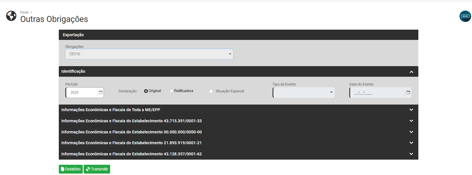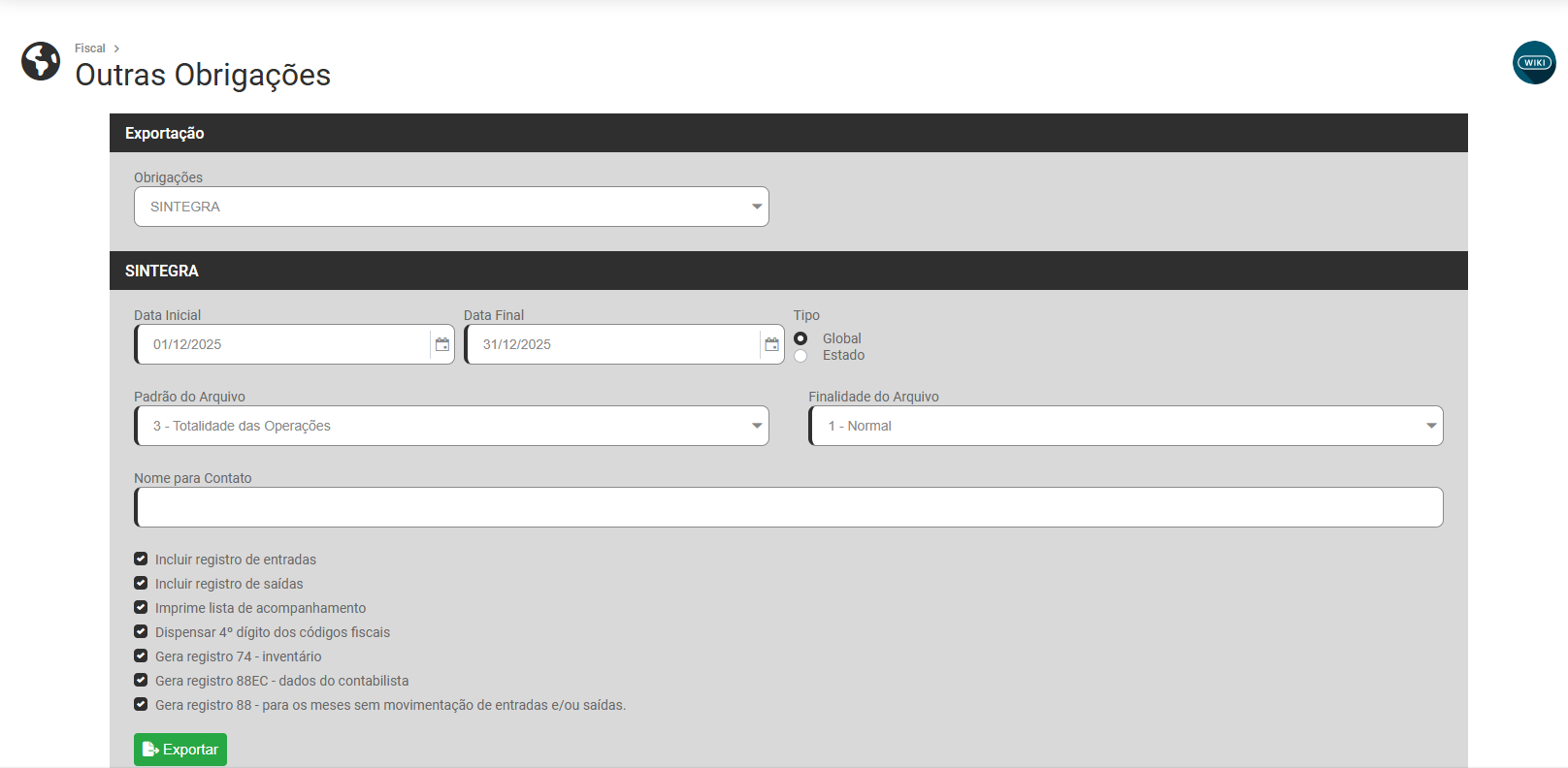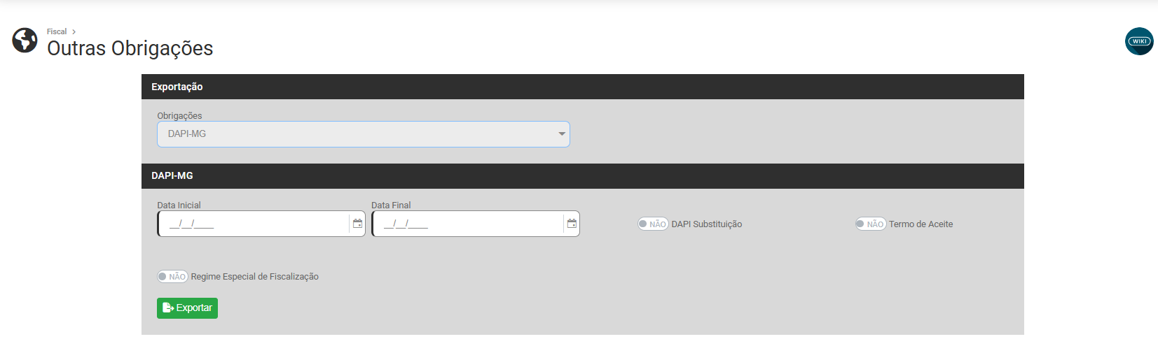 Será possível realizar a geração/exportações das Obrigações: