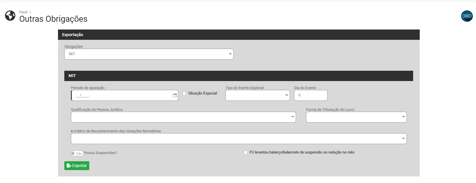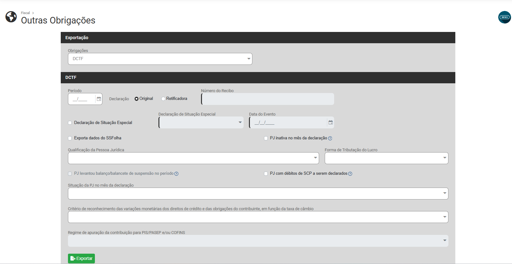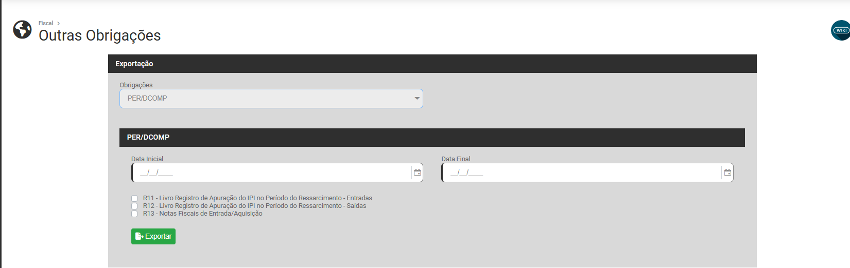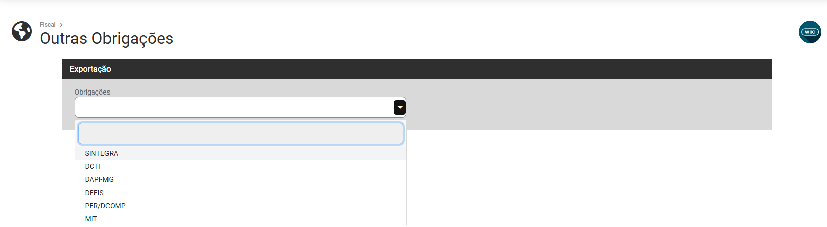 Exportação para Outras Obrigações (Sintegra, DCTF, DAPI MG, DEFIS, PER/DCOMP, MIT)