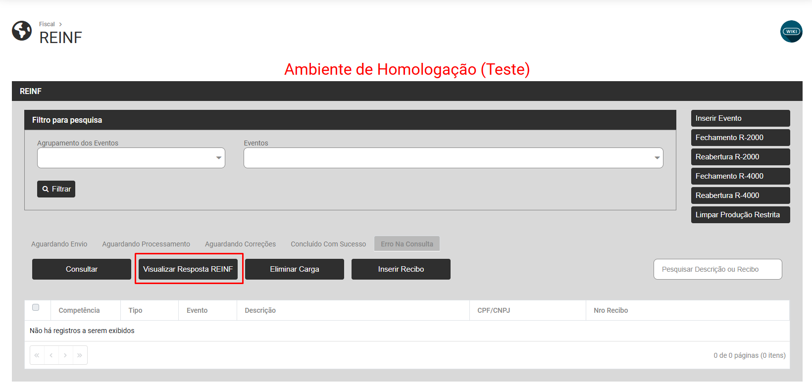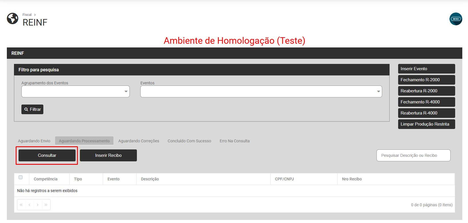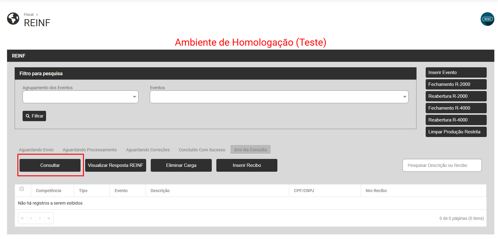 Selecione o Evento e clique em consulta para verificar o retorno da REINF