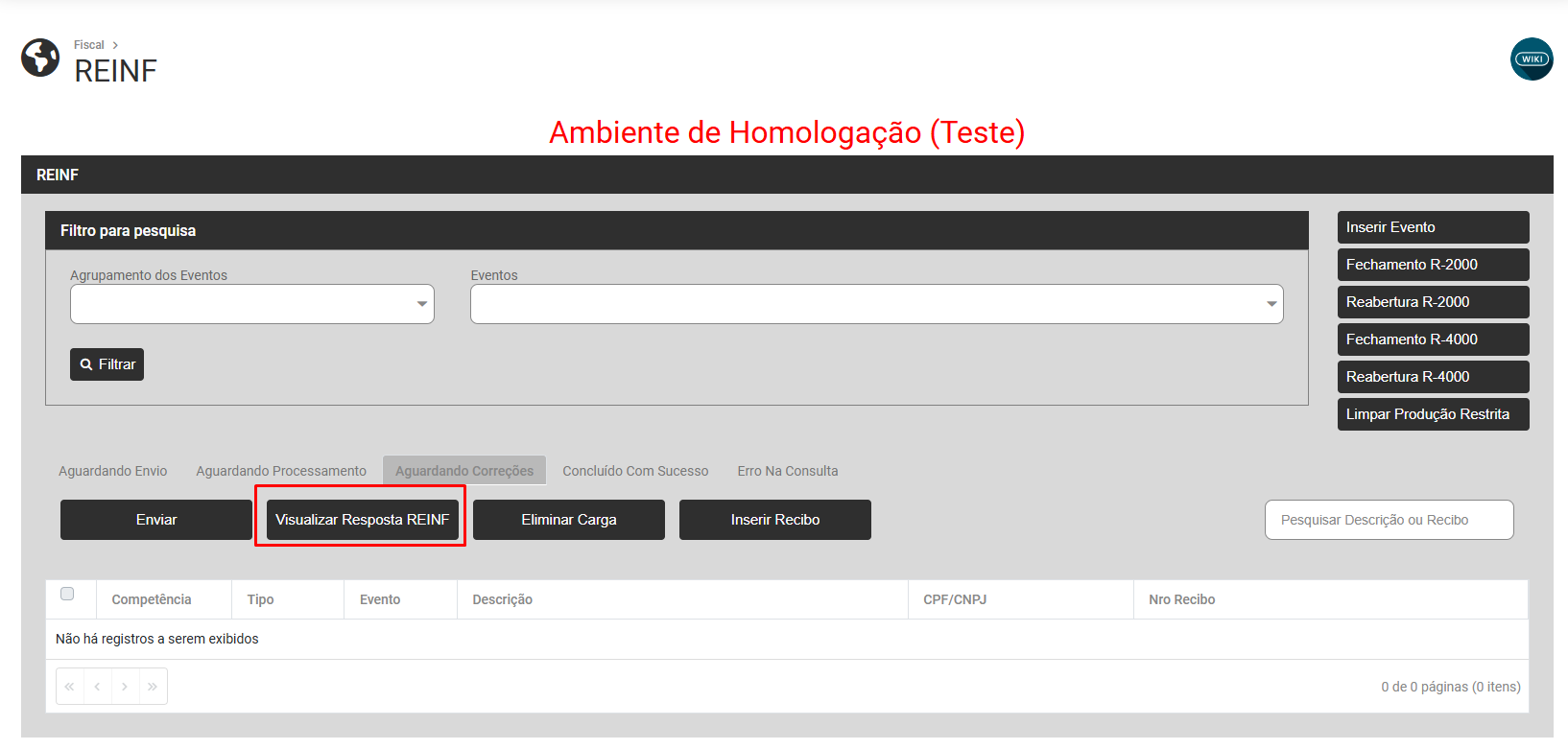 Caso você precise verificar a resposta dada pela REINF no retorno do evento que foi enviado, selecione o evento e acesse o botão Visualizar Resposta REINF