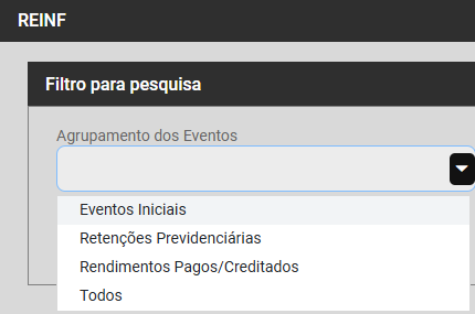Nesta aba estarão listados todos os eventos que foram enviados para a REINF e que foram Concluídos com Sucesso