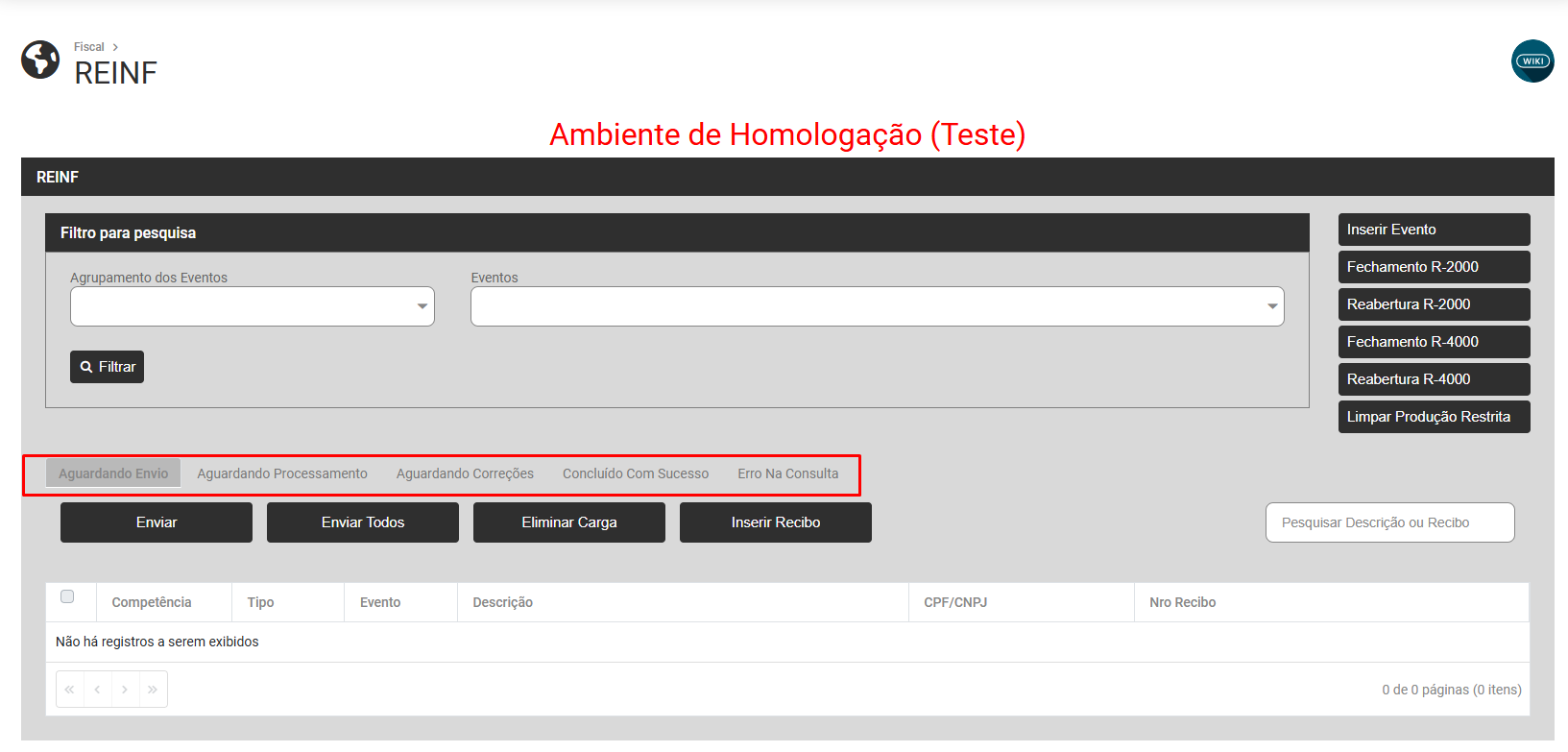 Conforme você enviar os eventos, o mesmo irá mudar de aba, se enquadrando na aba de acordo com a resposta da REINF