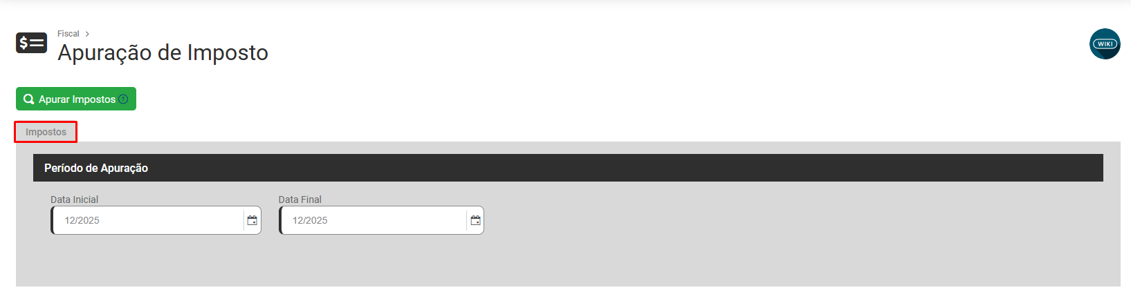 Na parte superior da tela teremos o botão AdicionarApurar Impostos (Os impostos gerados por aqui não terão Código de Receita, caso queira Exportar o Documento MIT, precisará informar o campo para os Impostos Apurados gerados)