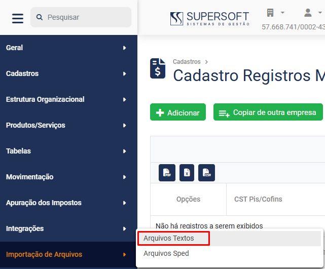 Para que você consiga realizar a importação de Arquivos Textos, acesse o menu Importação de Arquivos>Arquivos Textos