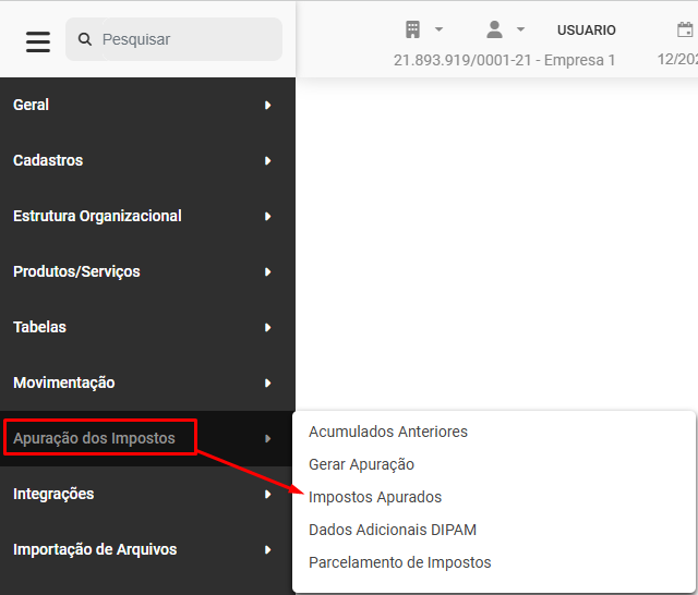 Lembrando que, os Impostos Apurados através do Sistema alimentarão esse menu automaticamente