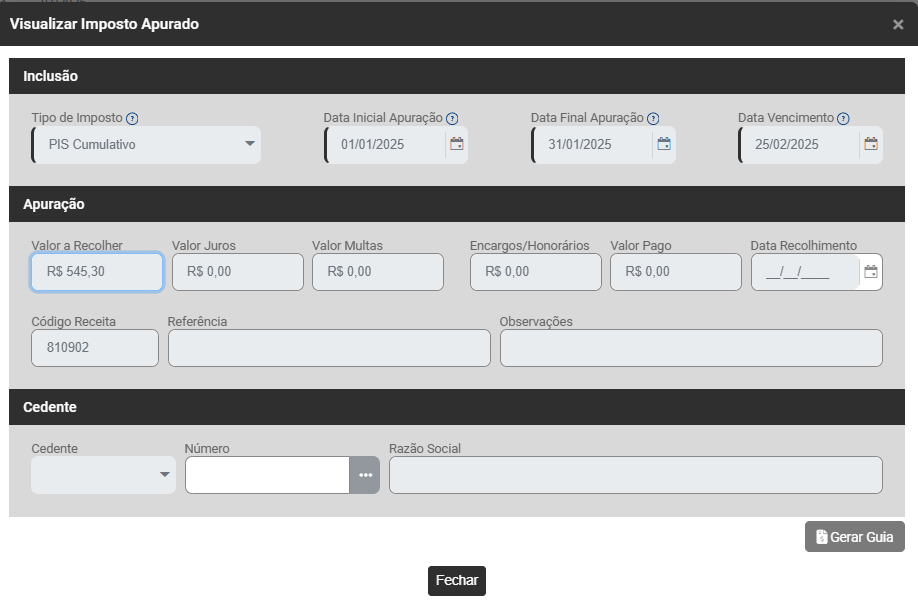 Impostos Apurados