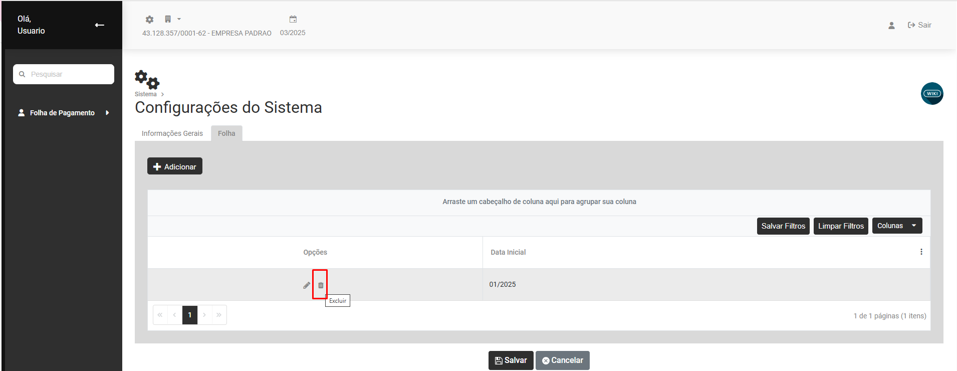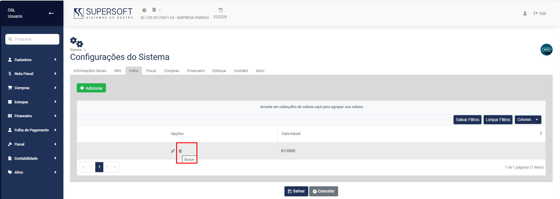 Ao Excluir as Configurações do Módulo Folha de Pagamento, não será possível sua recuperação, por este motivo só realize a exclusão se realmente for necessária