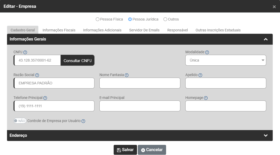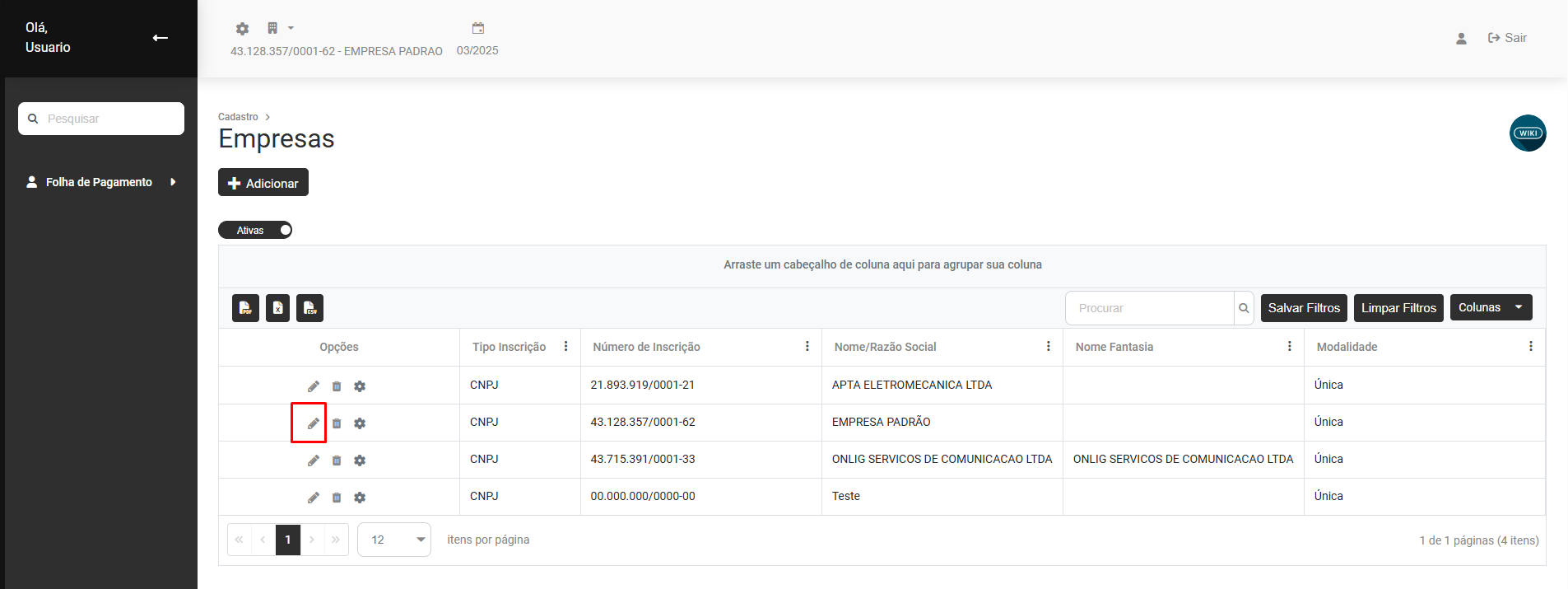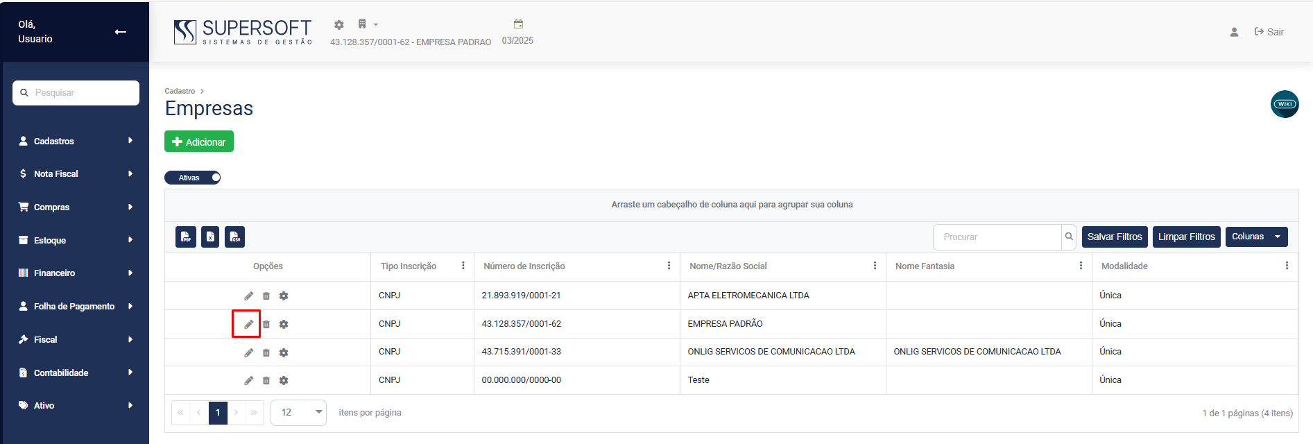 Ao Editar uma Empresa será possível corrigir informações que foram cadastradas erroneamente no Módulo