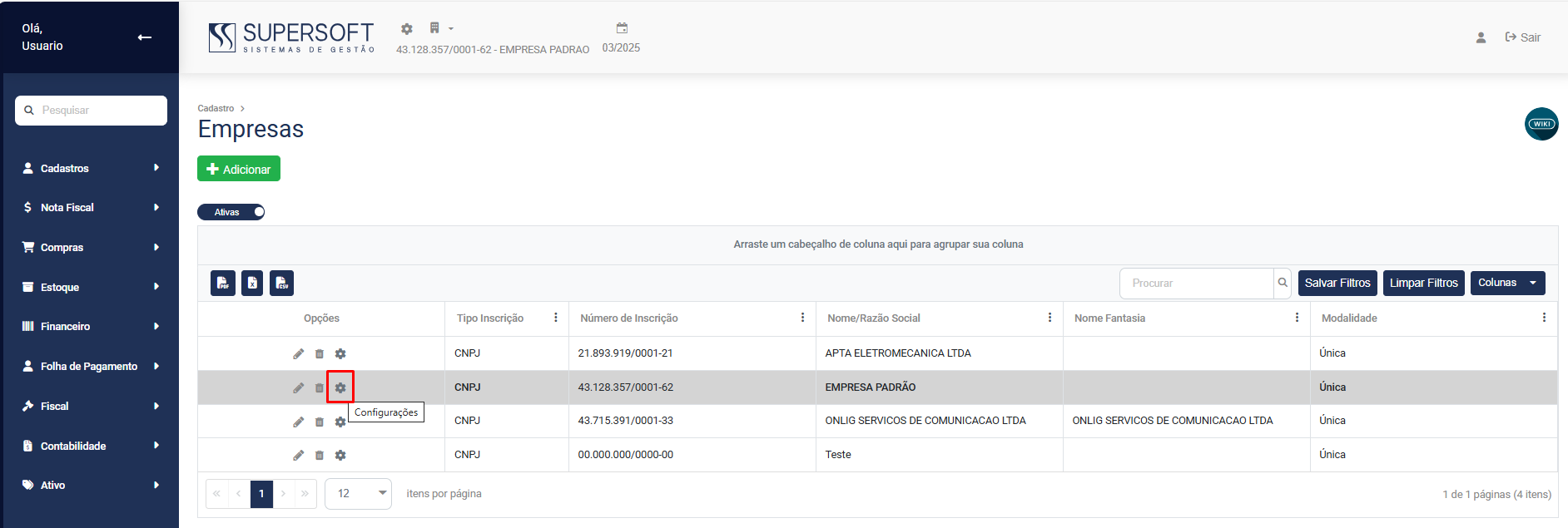 1) Agora, você conseguirá acessar o menu com a Lista de Empresas cadastradas no Módulo