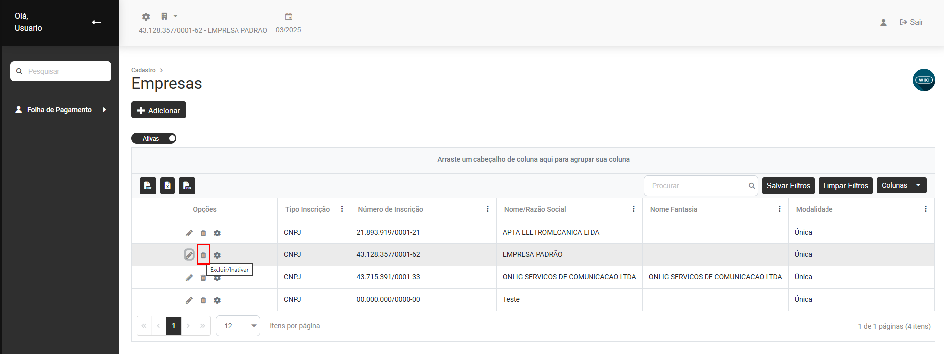 2) Ao clicar em Lista de Empresas, todas as Empresas cadastradas no Módulo serão apresentadas em uma Lista e através desse menu você conseguirá: