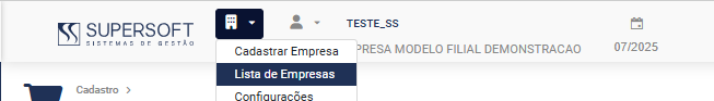 Para que você consiga acessar a Lista de Empresas cadastradas no Módulo acesse o menu superior da tela Lista de Empresas