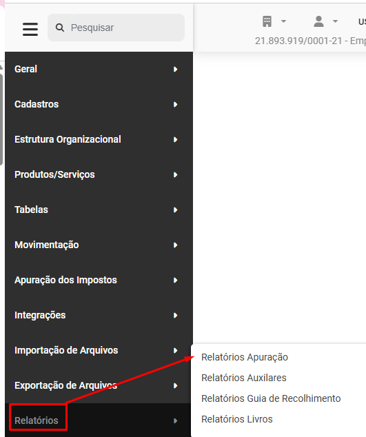 Depois de realizada a configuração dos Impostos, acesse o menu Relatórios>Relatórios de Apuração