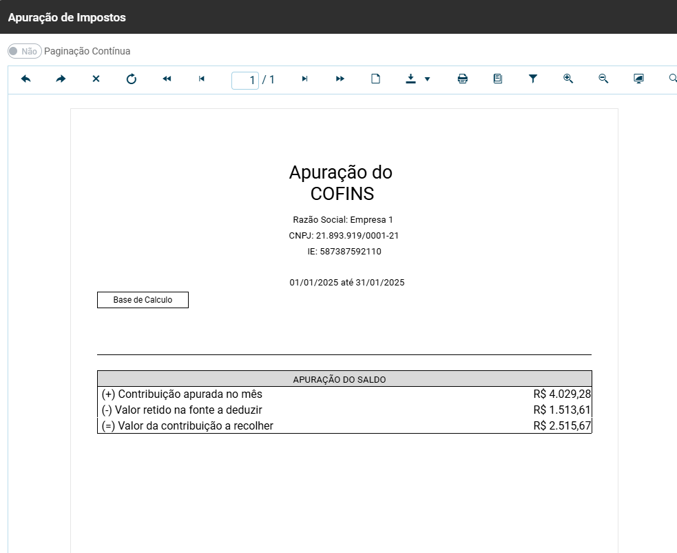 Relatório de Apuração de Impostos
