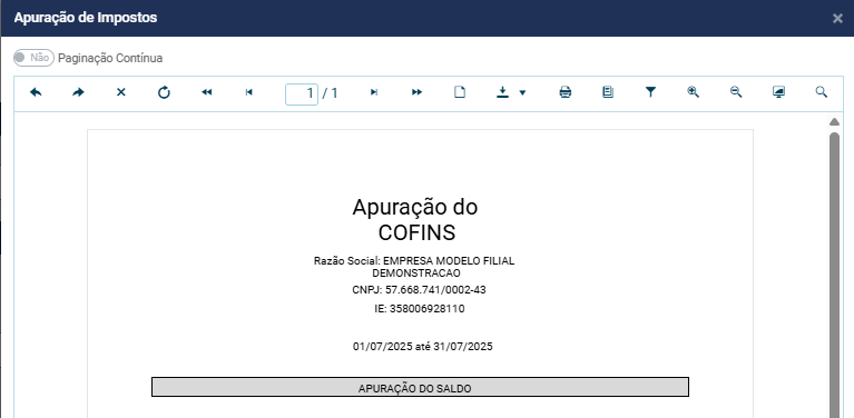 O Sistema apresentará as informações para a Apuração do Imposto definido