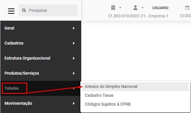 Para visualizar os Anexos do Simples Nacional, acesse o menu Tabelas>Anexos do Simples Nacional