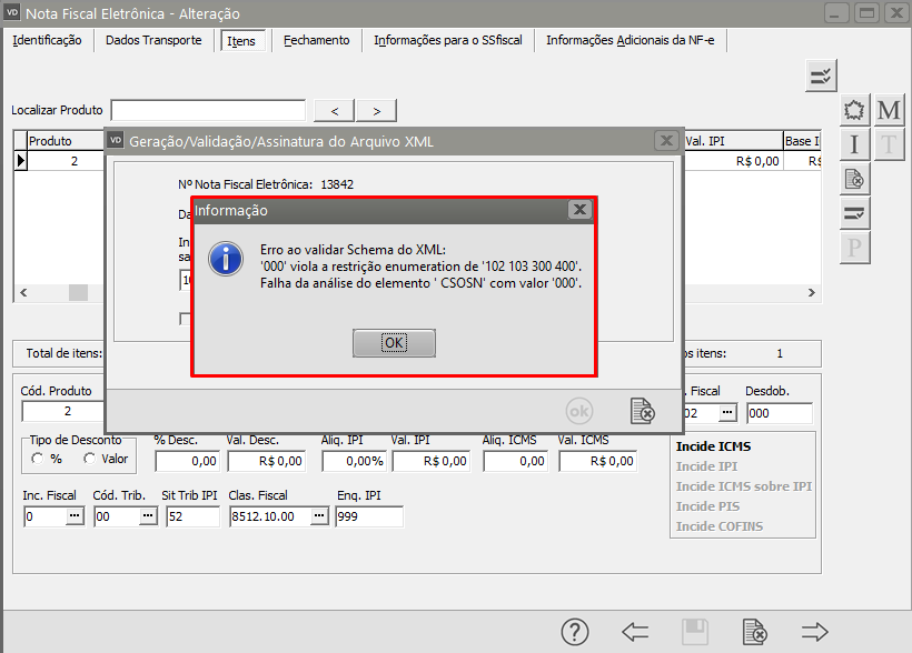 000 viola a restrição enumeration de 102 103 300 400. Falha da análise do elemento CSOSN com valor 000