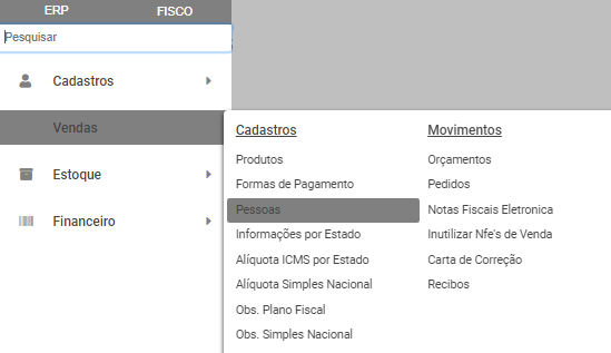 Acesse o menu Vendas>Nota Fiscal Eletrônica