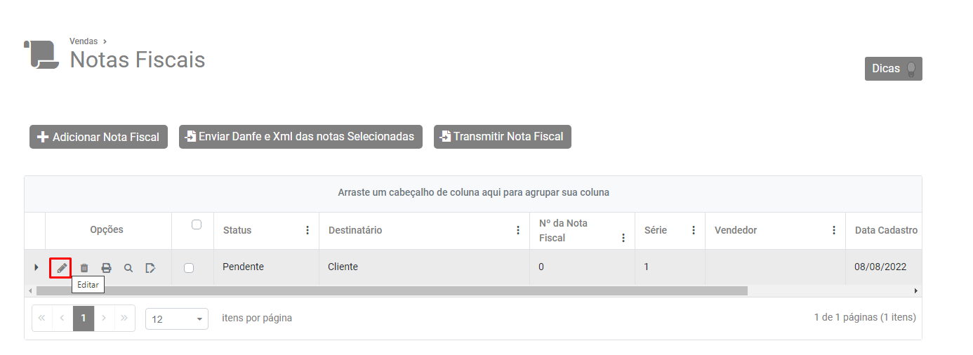 Edite a nota fiscal que apresentou a rejeição da Sefaz.