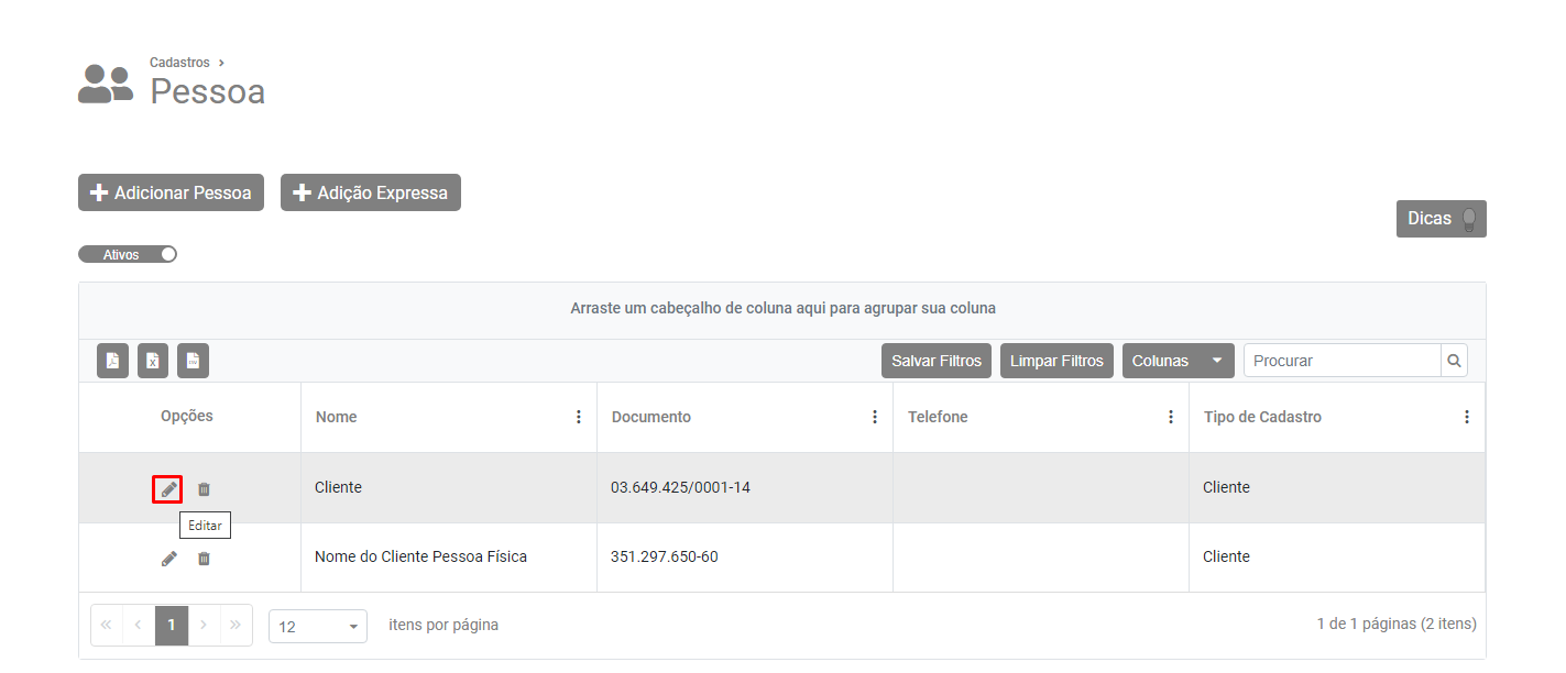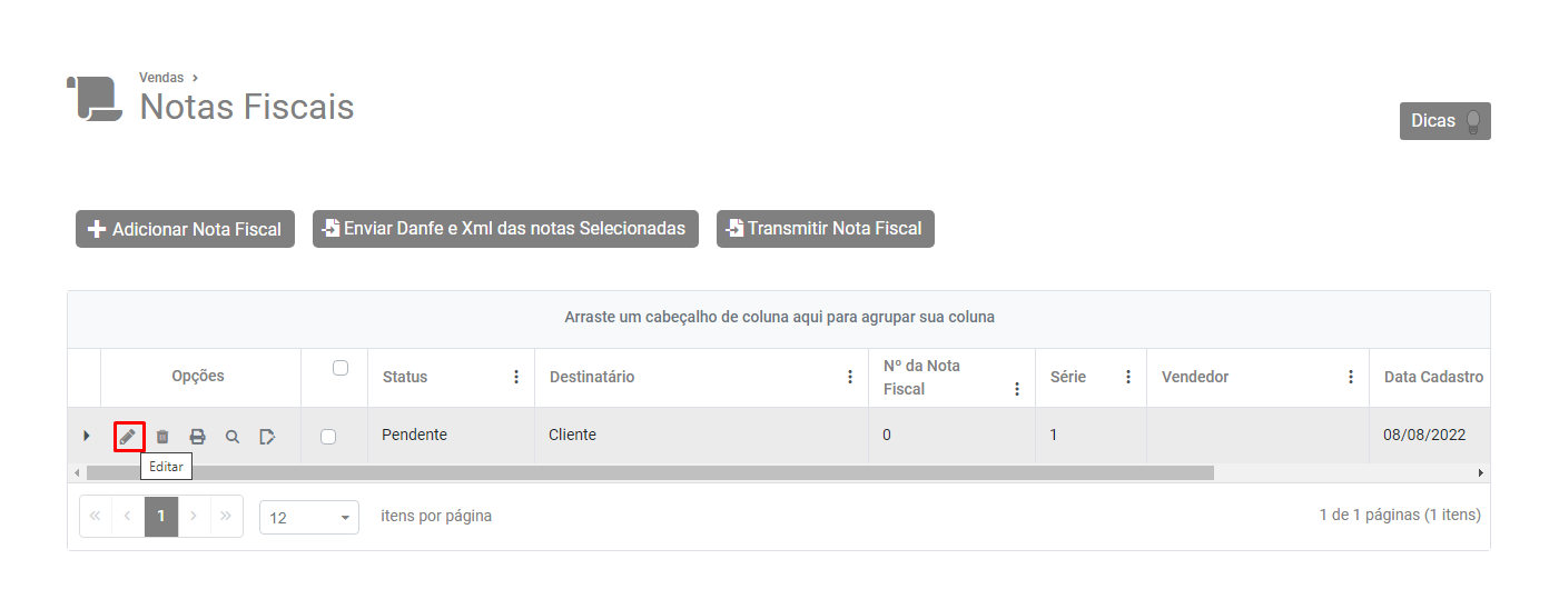 Pesquise pelo Cliente/destinatário da nota fiscal e edite seu cadastro