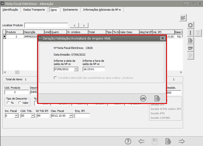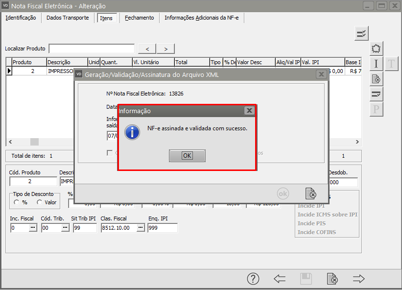 Se todas as informações estiverem corretamente cadastradas, o XML será assinado e validado com sucesso