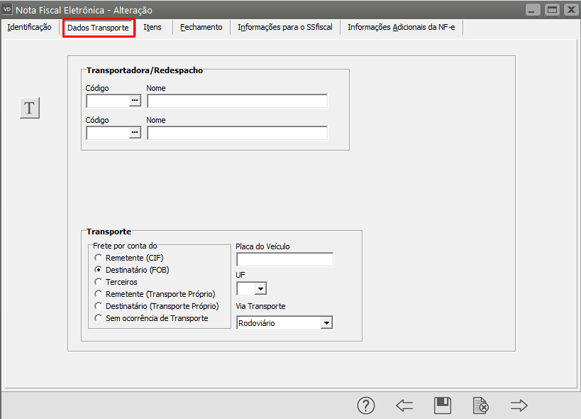 Informar a modalidade do frete