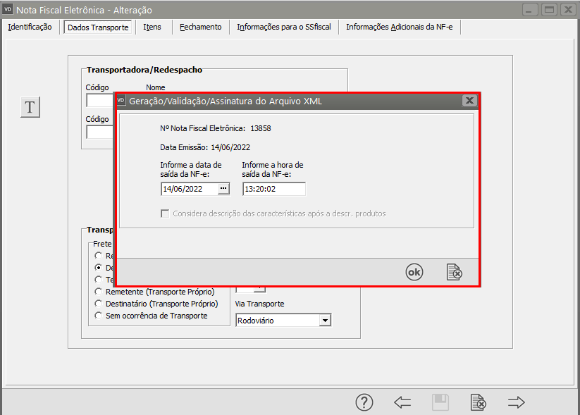 O sistema irá apresentar os dados do novo XML. clique em Ok.
