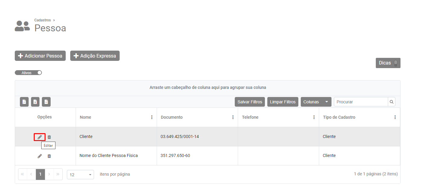 Pesquise pelo cliente e faça a edição de seu cadastro