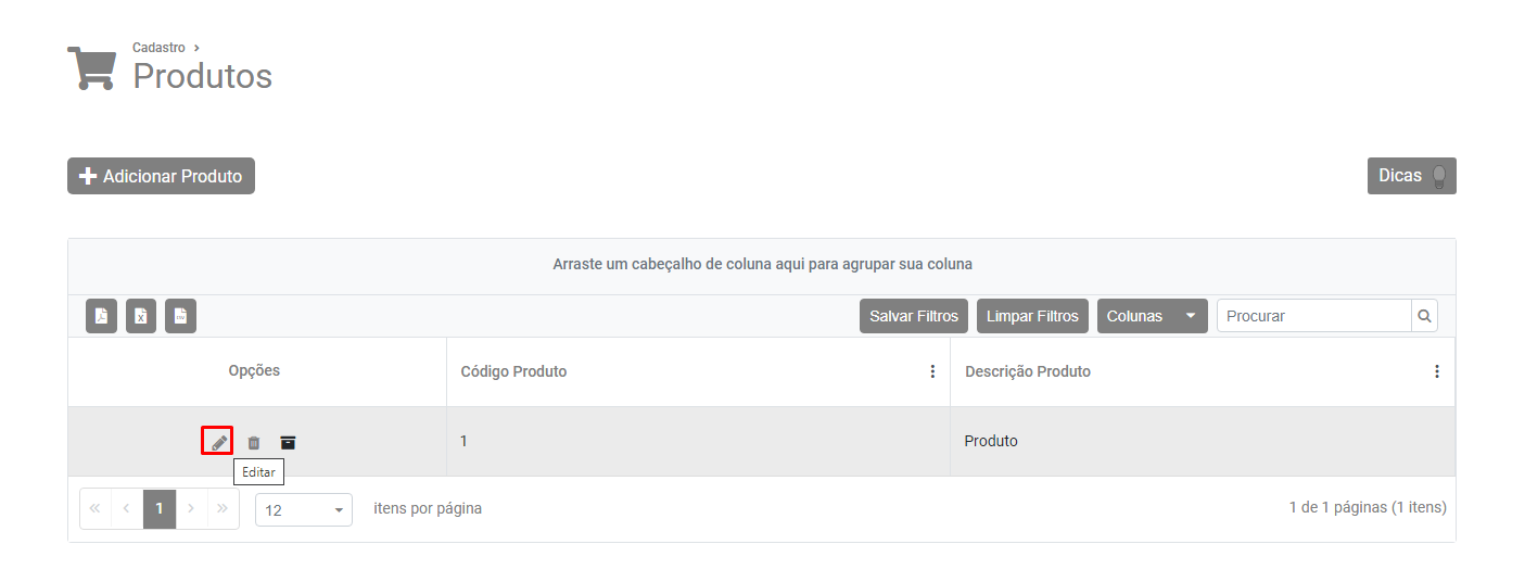 Pesquise pelo produto constante na Nota fiscal que foi rejeitada pela Sefaz e faça a edição de seu cadastro