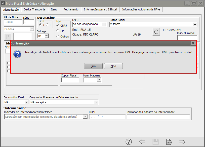 O Sistema irá questionar se você deseja gerar um novo XML para Transmissão, clique em SIM.