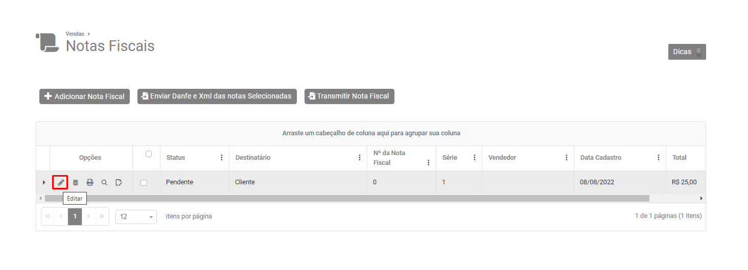 Faça a edição da Nota Fiscal Eletrônica que apresentou a inconsistência