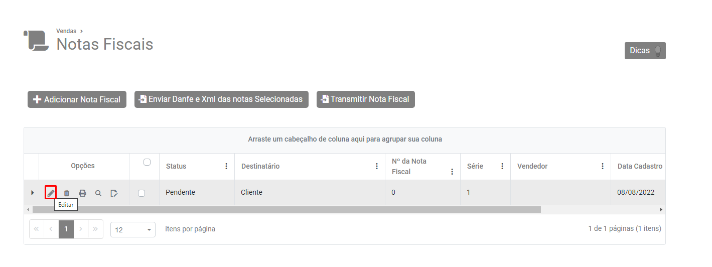 Edite a nota fiscal eletrônica que foi rejeitada pela Sefaz.