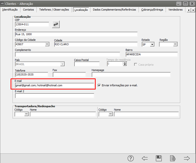 Verifique se foram cadastrados mais do que um email para o cliente, em caso afirmativo faça alteração e deixe apenas um email no cadastro. Salve o cadastro do cliente.