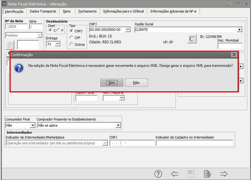 Acesse Movimentação>Nota Fiscal Eletrônica>Manutenção, pesquise pela NF-e e clique na seta Avança, em seguida edite a Nota e busque pelo cliente (para que o sistema atualize a informação que foi alterada em seu cadastro), Salve a NF-e e o Sistema questionará se você deseja gerar um novo XML para Transmissão, clique em SIM.