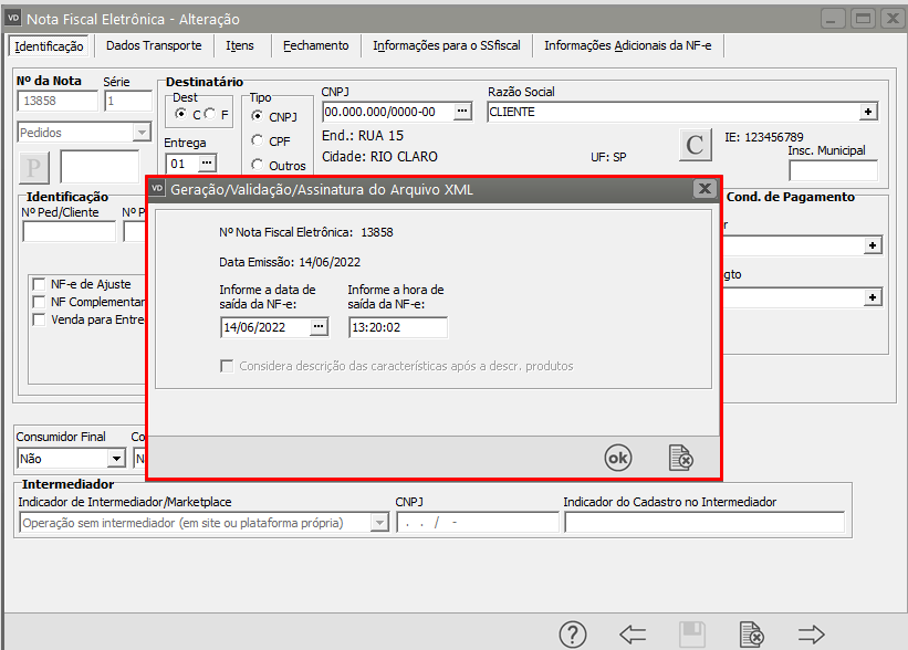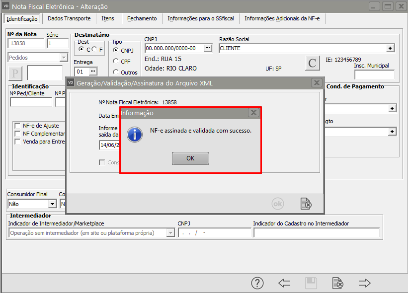 Serão apresentadas as informações do XML que foi gerado, clique em OK