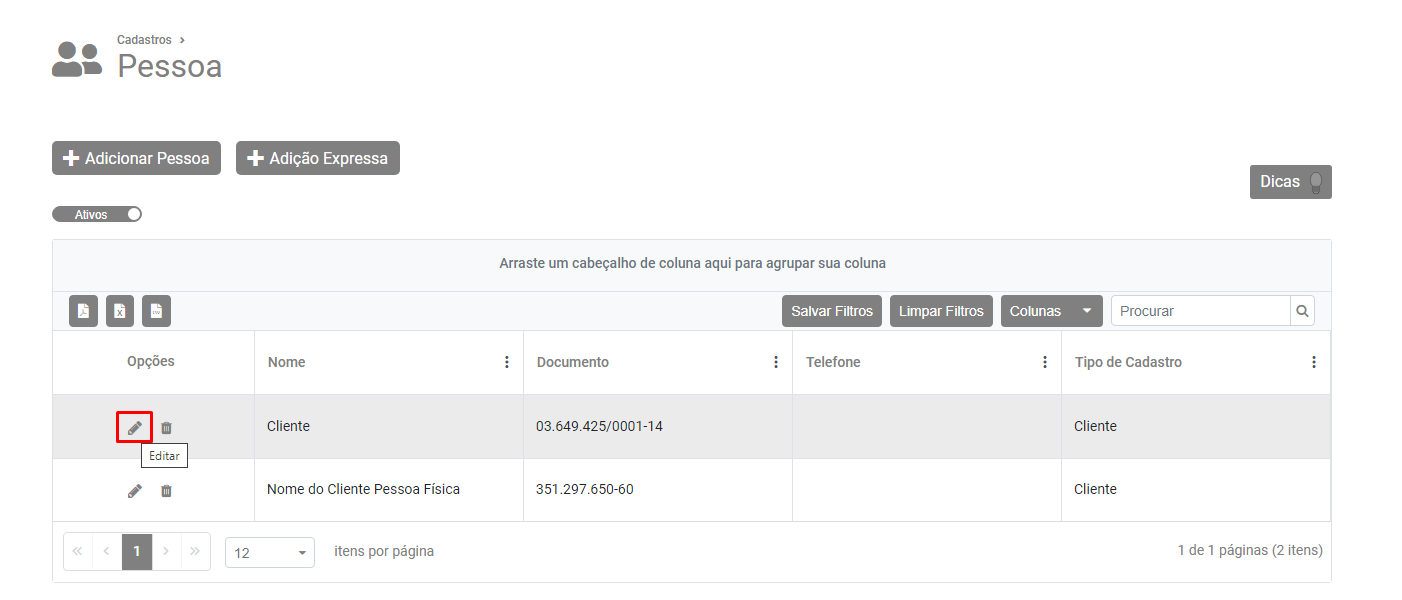 Pesquise pelo cliente e faça a edição de seu cadastro.