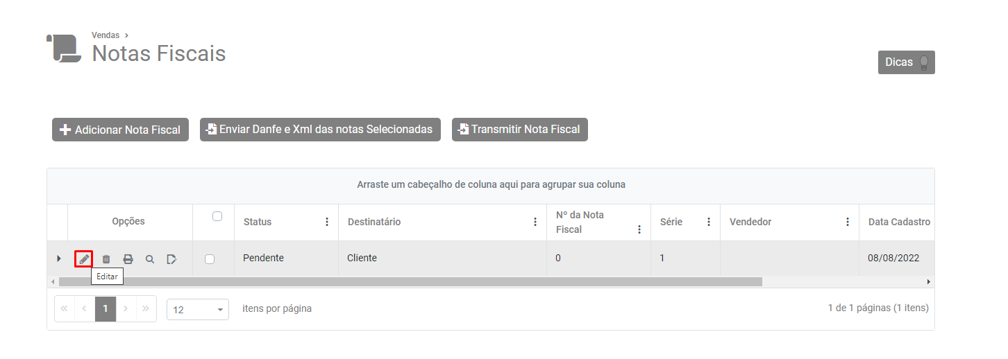 Pesquise pela Nota Fiscal que apresentou a rejeição e faça a edição da mesma.