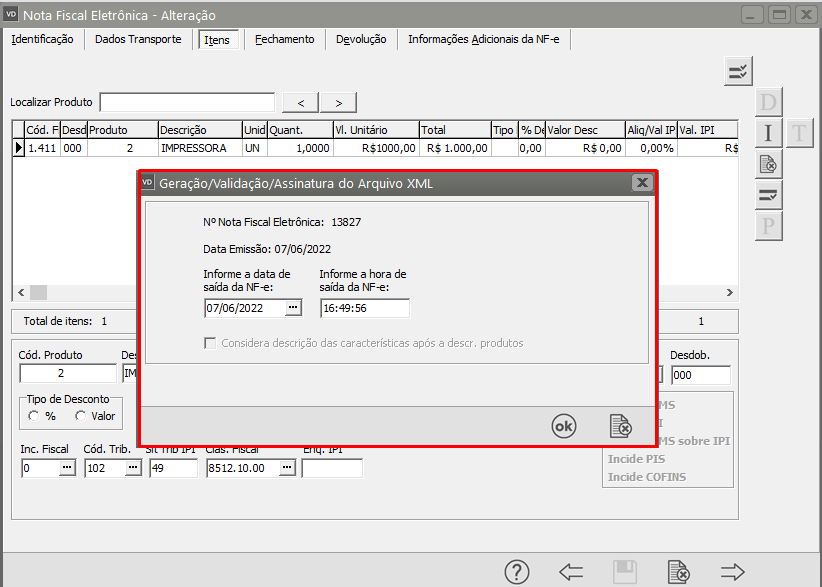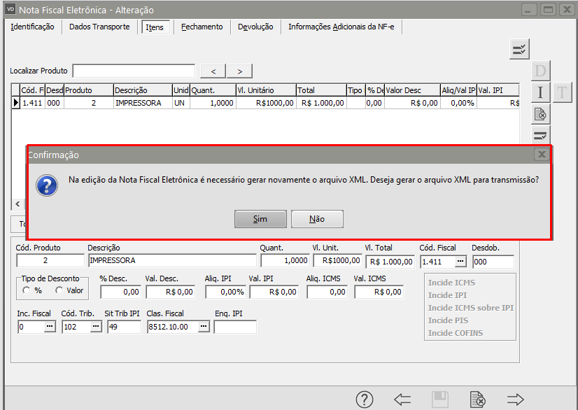 Após a alteração salve a NF-e