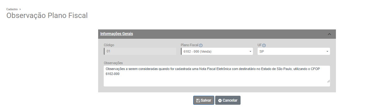 No caso de nosso exemplo serão as informações cadastradas no campo Observações Corpo da Nota NF-e/NFC-e