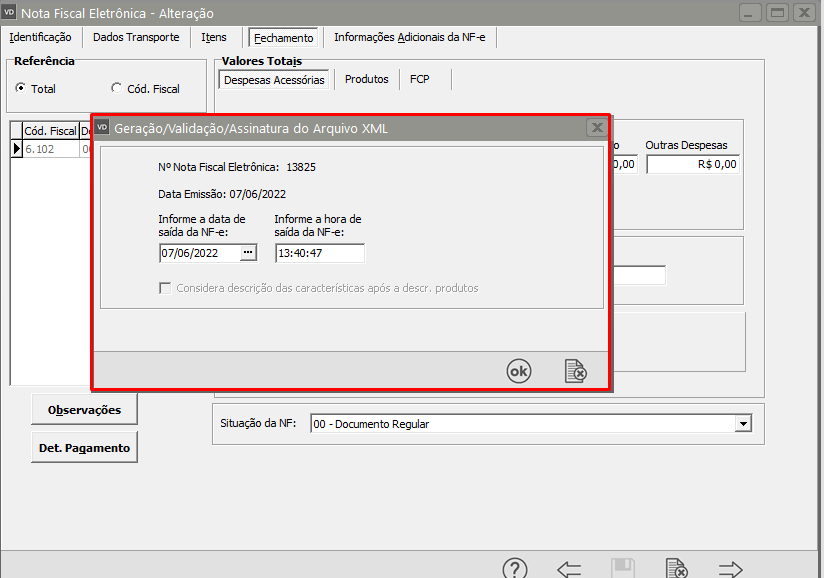Serão apresentadas as informações do XML que está sendo gerado, clique em Ok.