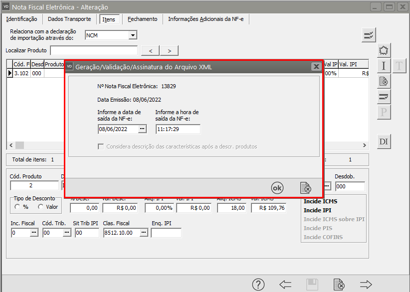 Será apresentada a tela com os dados do novo XML, clique em Ok.