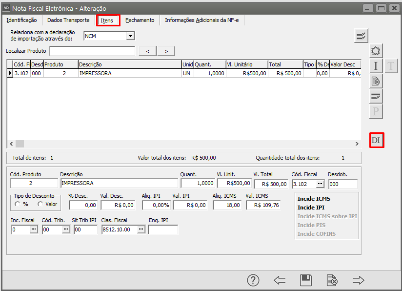 Falha da analise do elemento nDraw com valor 15/1258. (NF Importação)