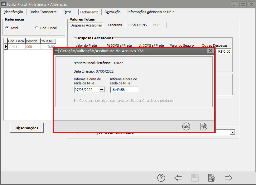 SalveApós conferência e correção das informações, salve novamente a NF-eNota Fiscal Eletrônica.