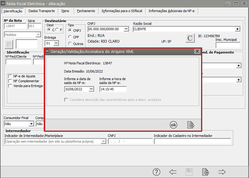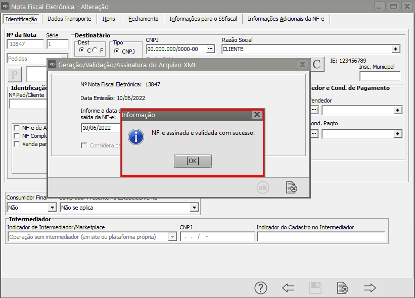 Se todas as informações estiverem corretamente cadastradas a NF-e será assinada e validada com sucesso.
