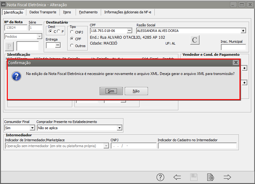 Pesquise pela NF-e que foi rejeitada pela Sefaz e clique na seta Avança, em seguida edite a NF-emesma.