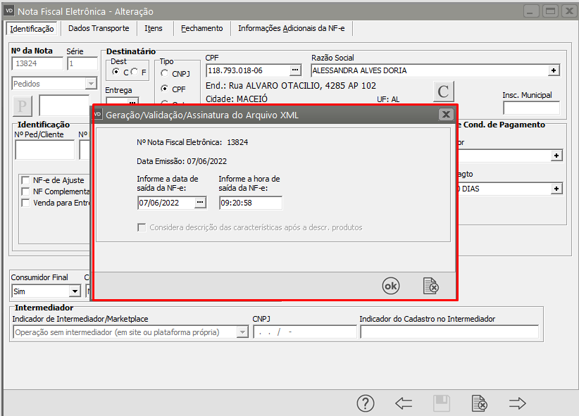 Em seguida serão apresentadas as informações do XML gerado, clique em OK