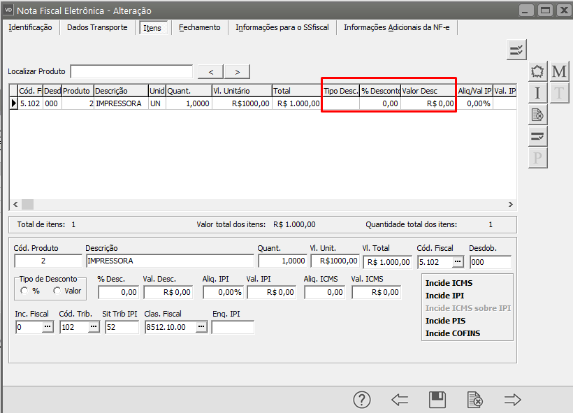 Confira as informações cadastradas nos campos referente ao Desconto do Produto e faça as correções necessárias.