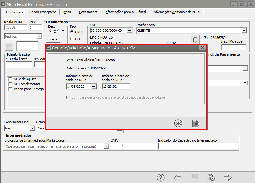 Serão apresentadas as informações do XML gerado, clique em OK.