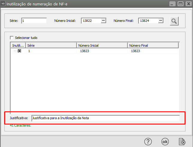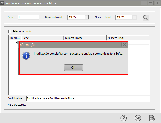 A Inutilização do formulário da NF-e será concluído com sucesso e enviado para a Sefaz.