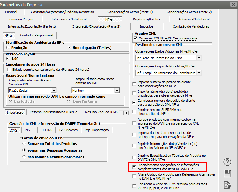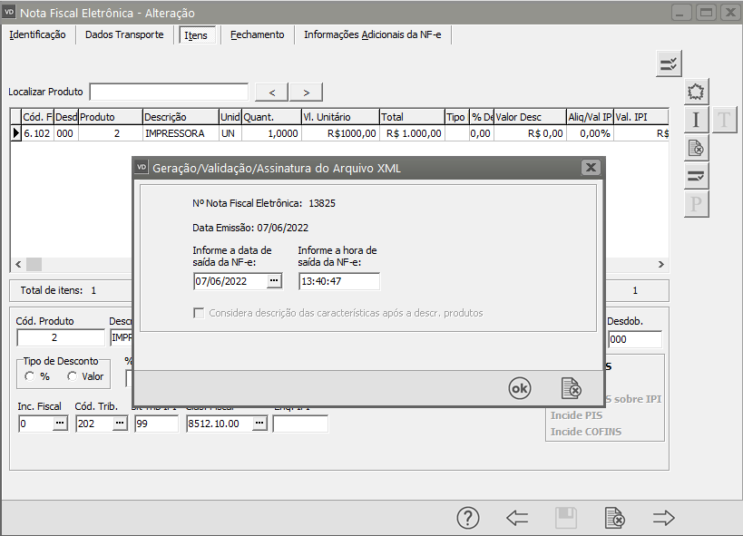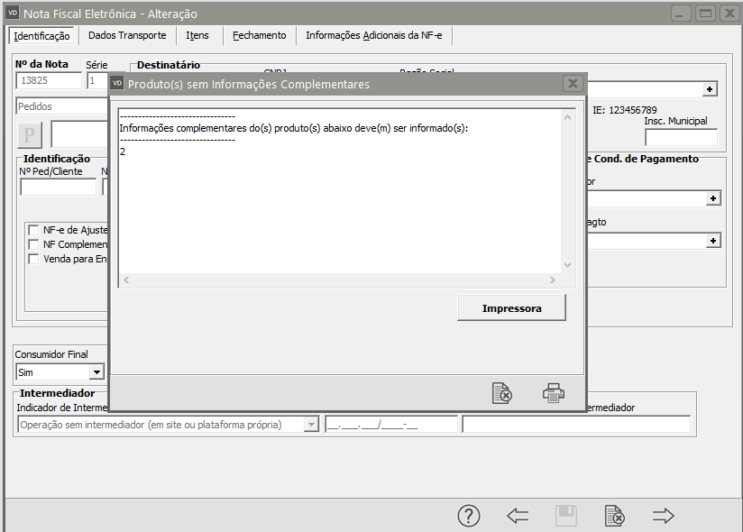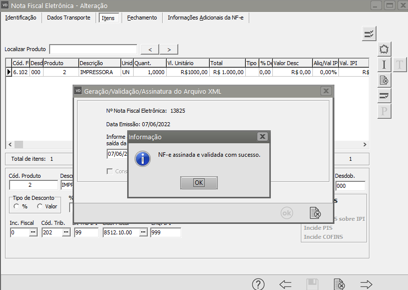 Preencha as Informações Complementares de cada item da NF-e, em seguida clique em Ok