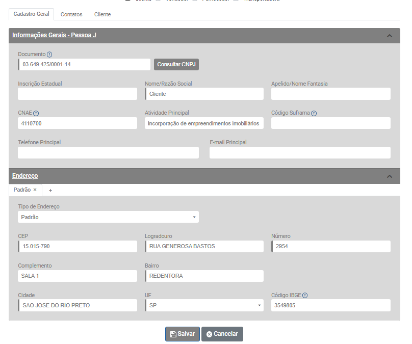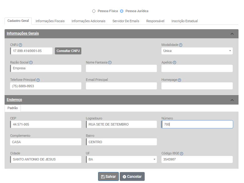 Em seguida acesse o menu Cadastros>Pessoas e edite o cadastro do destinatário da NFe, verifique se em seu cadastro existem caracteres especiais cadastrados indevidamente (verifique em todas as abas)
